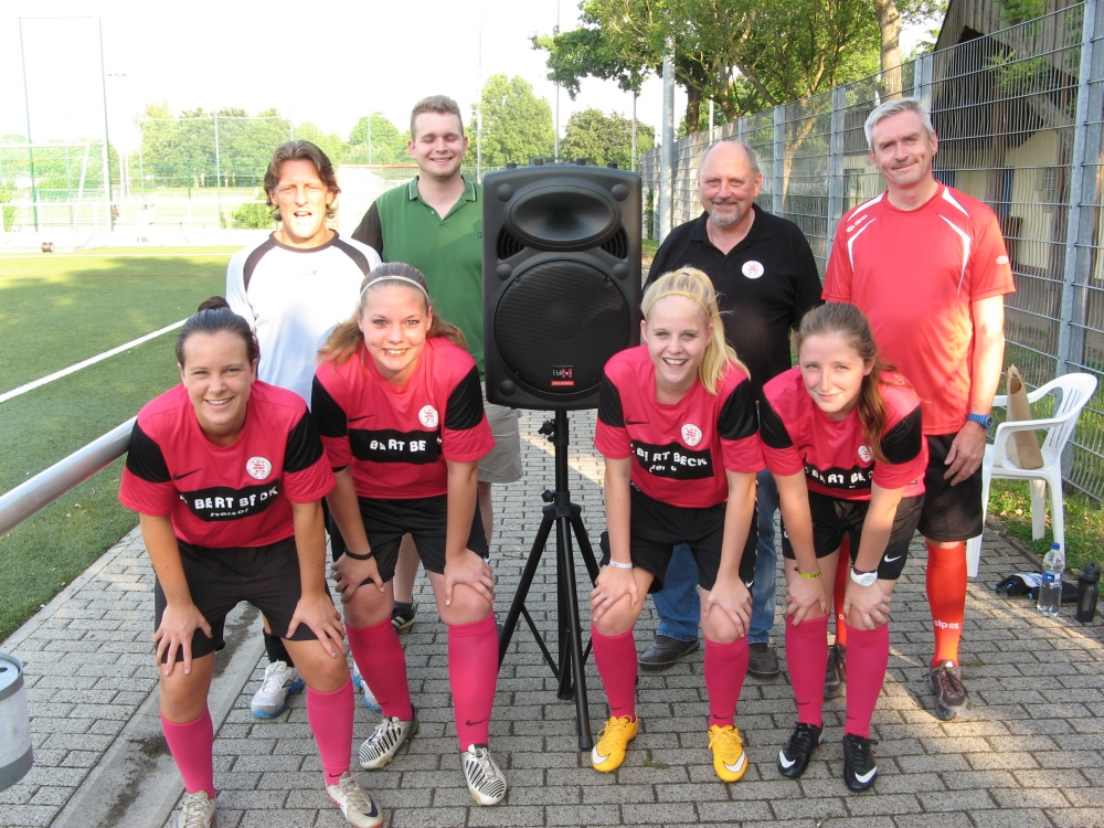 Die neue Soundanlage der Frauen zeichnet sich sowohl durch Kompaktheit, wie auch durch Leistungsstärke aus. Immerhin 450 Watt Sinus werden den Frauen und Mädchen in Zukunft bei ihren Heimspielen Gehör verschaffen und die Zuschauer angenehm beschallen und informieren. Die Anlage ist gut transportabel, netzunabhängig und kann über einen eingebauten Akku bis zu 6 Stunden ohne Steckdose betrieben werden. Der eingebaute Verstärker kann MP3-Dateien direkt über eine eingebaute USB-Buchse abspielen. Zu der Anlage gehören zusätzlich 2 Funkmikrofone und ein Boxenständer.