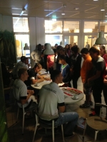 In der Aula wurden Tische zusammengestellt und schon ging es los.