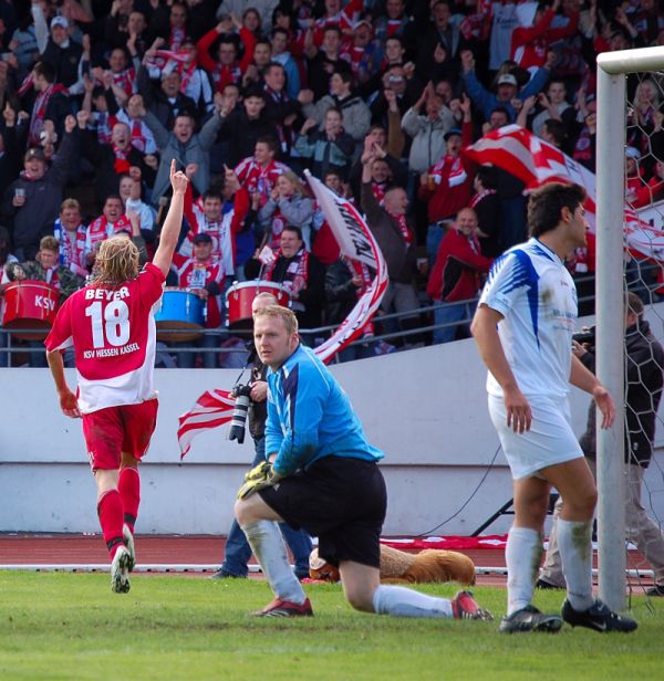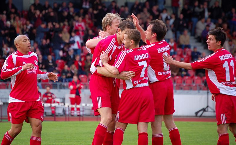 Matthias Hamann (KSV Hessen): "Wir haben jetzt den April abgeschlossen mit acht Siegen in acht Spielen, davon nur eins nicht ohne Gegentor. DafĂŒr verdient die Mannschaft ein groĂes Kompliment. So deutlich wie es das 3:0 sagt, war es allerdings heute nicht". Fotos: Roland Sippel, out take film