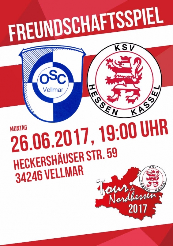 Die Saisonvorbereitung läuft auf vollen Touren. Weiter geht es heute mit einem Freundschaftsspiel gegen den OSC Vellmar. Anpfiff ist um 19:00 Uhr auf dem Sportplatz am Schwimmbad in Vellmar.