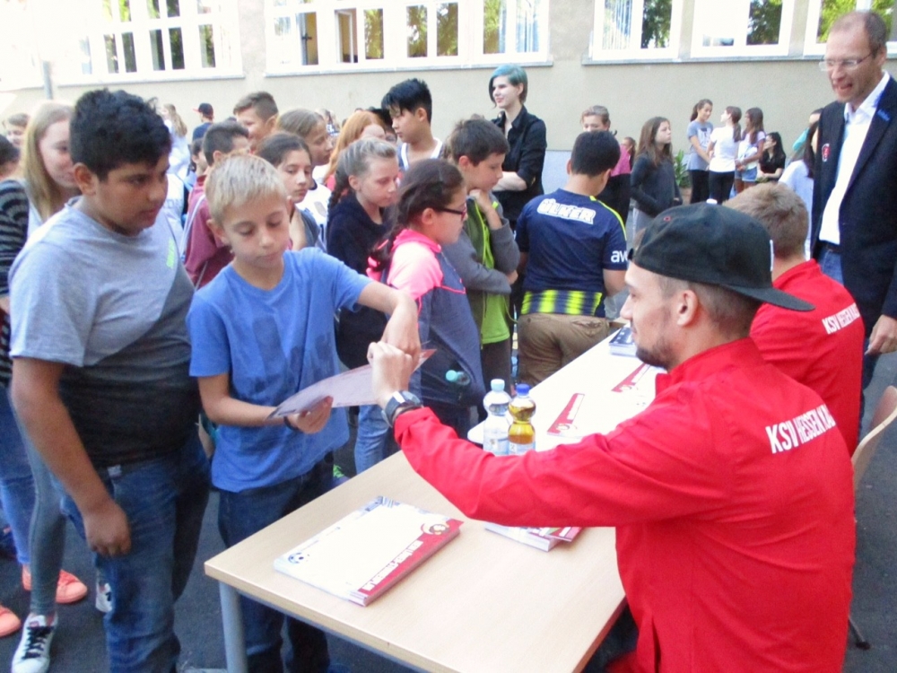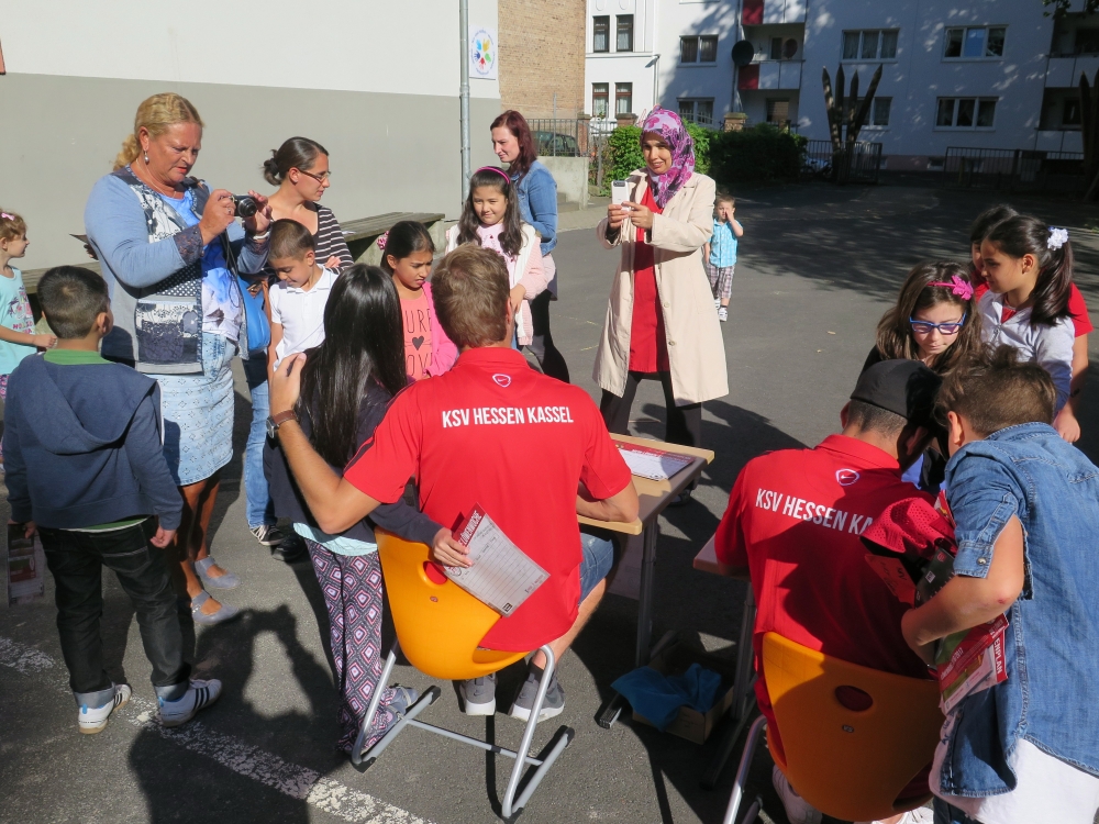 FĂŒnf Teams aus Verantwortlichen und Spielern des KSV Hessen Kassel besuchten Kasseler Schulen zum Schulanfang