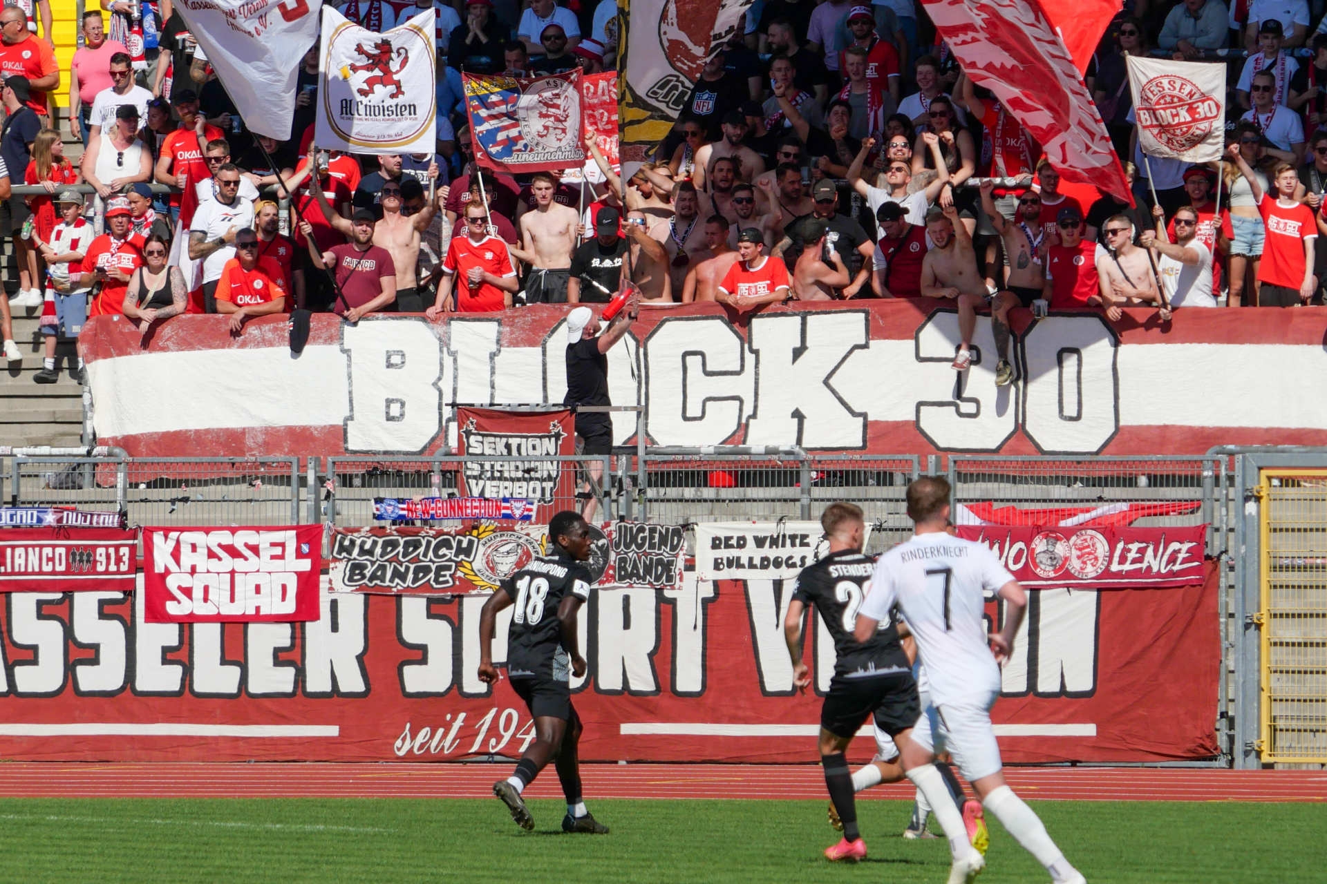 KSV Hessen Kassel - SG Barockstadt Fulda-Lehnerz, Fankurve, Zaunfahnen