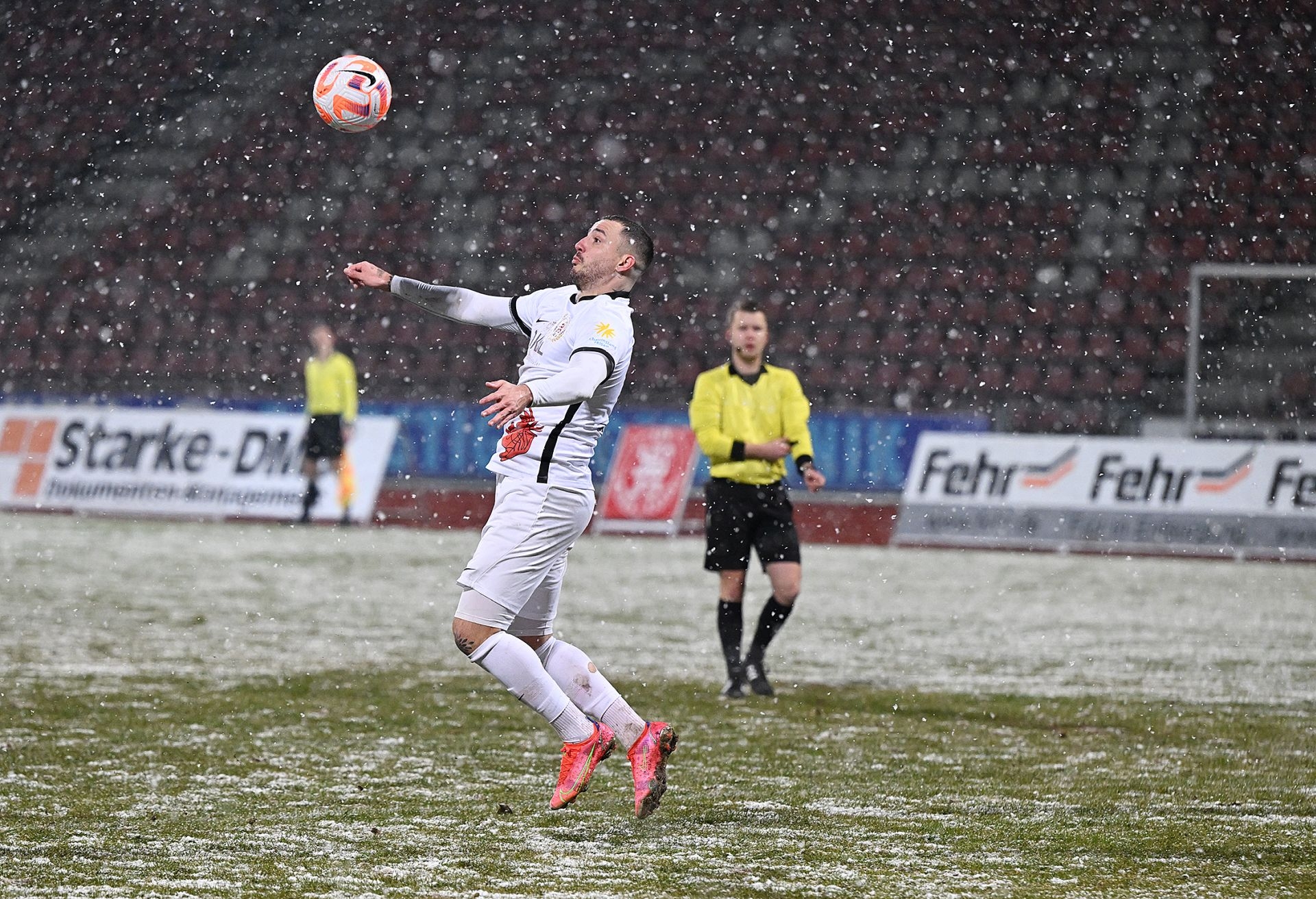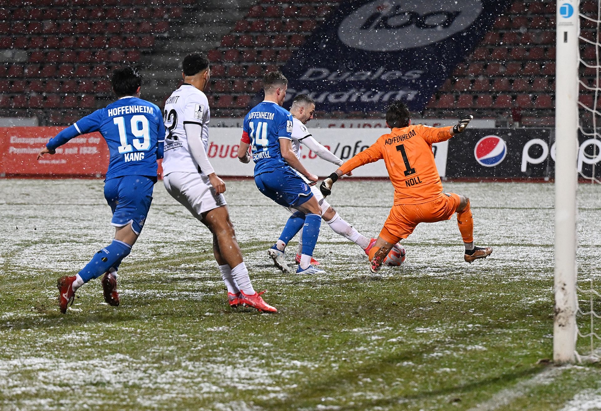 Saison 2022/23, KSV Hessen Kassel, TSG Hoffenheim 1899 II, Endstand 1:1, Ball im Schnee, Spielabsage