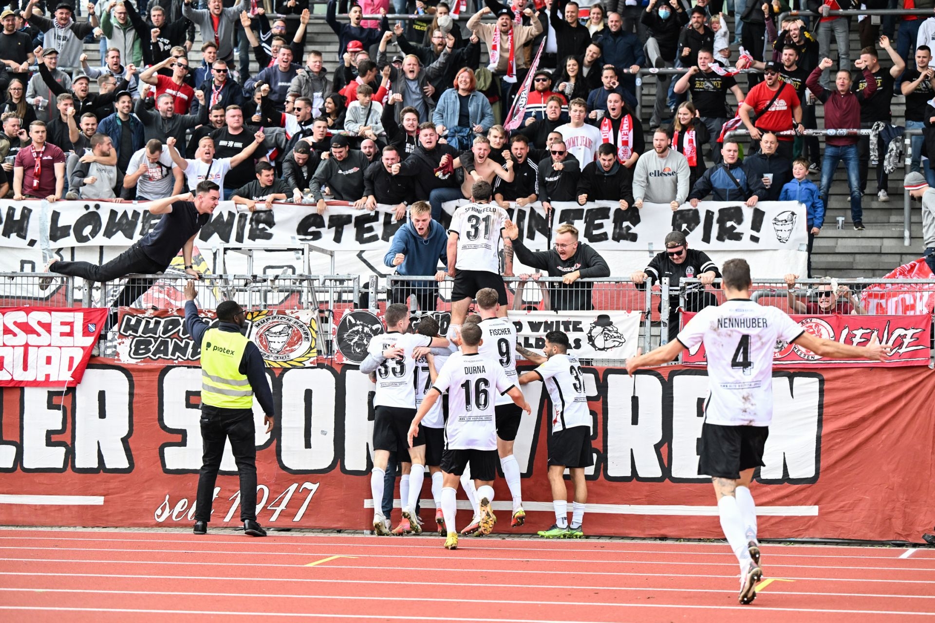 Saison 2022/23, Spieltag 2, KSV Hessen Kassel, TSV Steinbach Haiger, Endstand 2:0, Jubel zum 2:0, Fans, Kurve