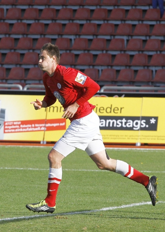 Christian Henel pustet erstmal durch, nach seinem ersten Tor für den KSV