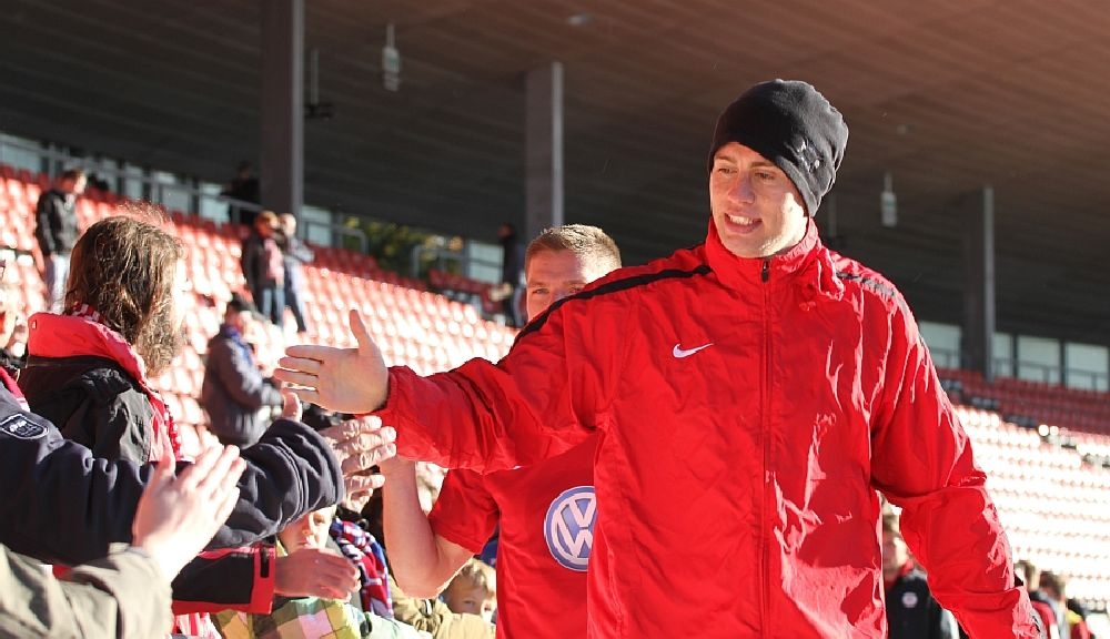 Nach einem gelungenem Debut,bekommt Marco Dawid einen Fanschal geschenkt und ein Lob von jens Rose