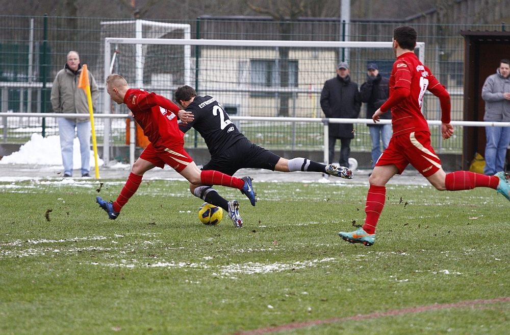 Benjamin Trümner setzt den Würzburger Abwehrspieler unter Druck und luchst ihm mit Hilfe von Jonas Marz den Ball ab...