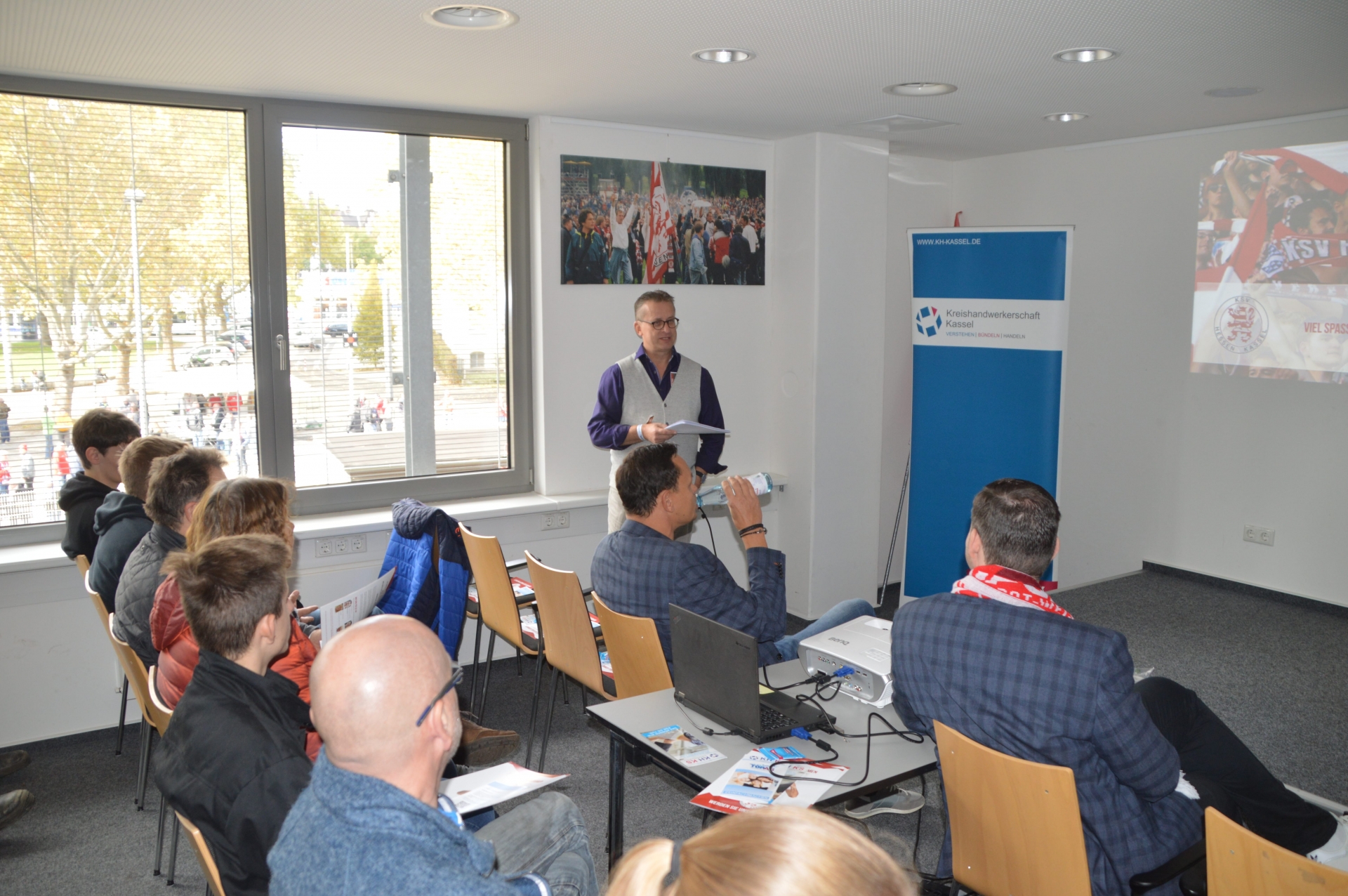 Gemeinsam mit der Kreishandwerkerschaft Kassel fand beim Spiel gegen den SV Steinbach am 12. Oktober 2019 im Kasseler Auestadion die BegrĂŒĂung der neuen Auszubildenden im Handwerk statt.