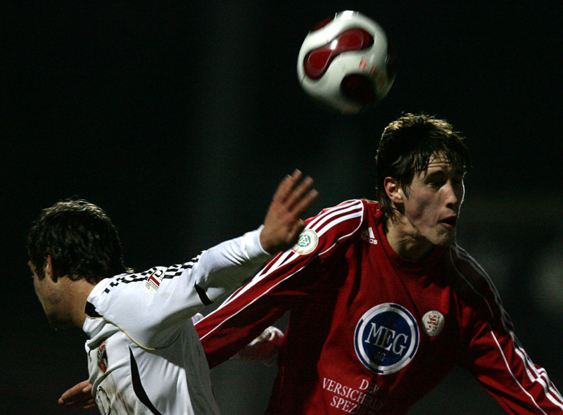 Thorsten Schönewolf (rechts) im Kopfballduell mit Steffen Wohlfarth (FC 04 Ingolstadt)