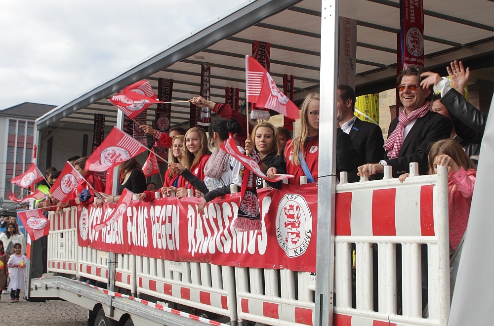 Am 15. September 2013 fand der große Festzug zum Stadtjubiläum statt. Die Heimatstadt der Löwen feiert ihr 1100-jähriges Bestehen. Natürlich gehört der KSV Hessen Kassel zu den Gratulanten und nahm mit einem eigenen Festwagen an dem großen Umzug teil. Unser Fotograf Eick Rösch hat den Festumzug auf einer Fotostrecke festgehalten.
