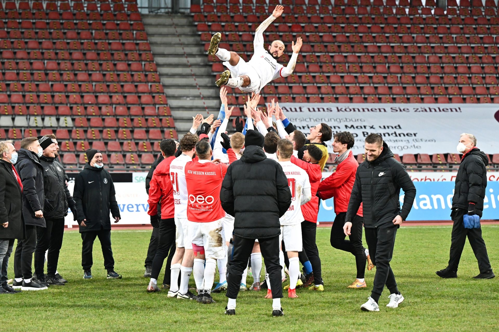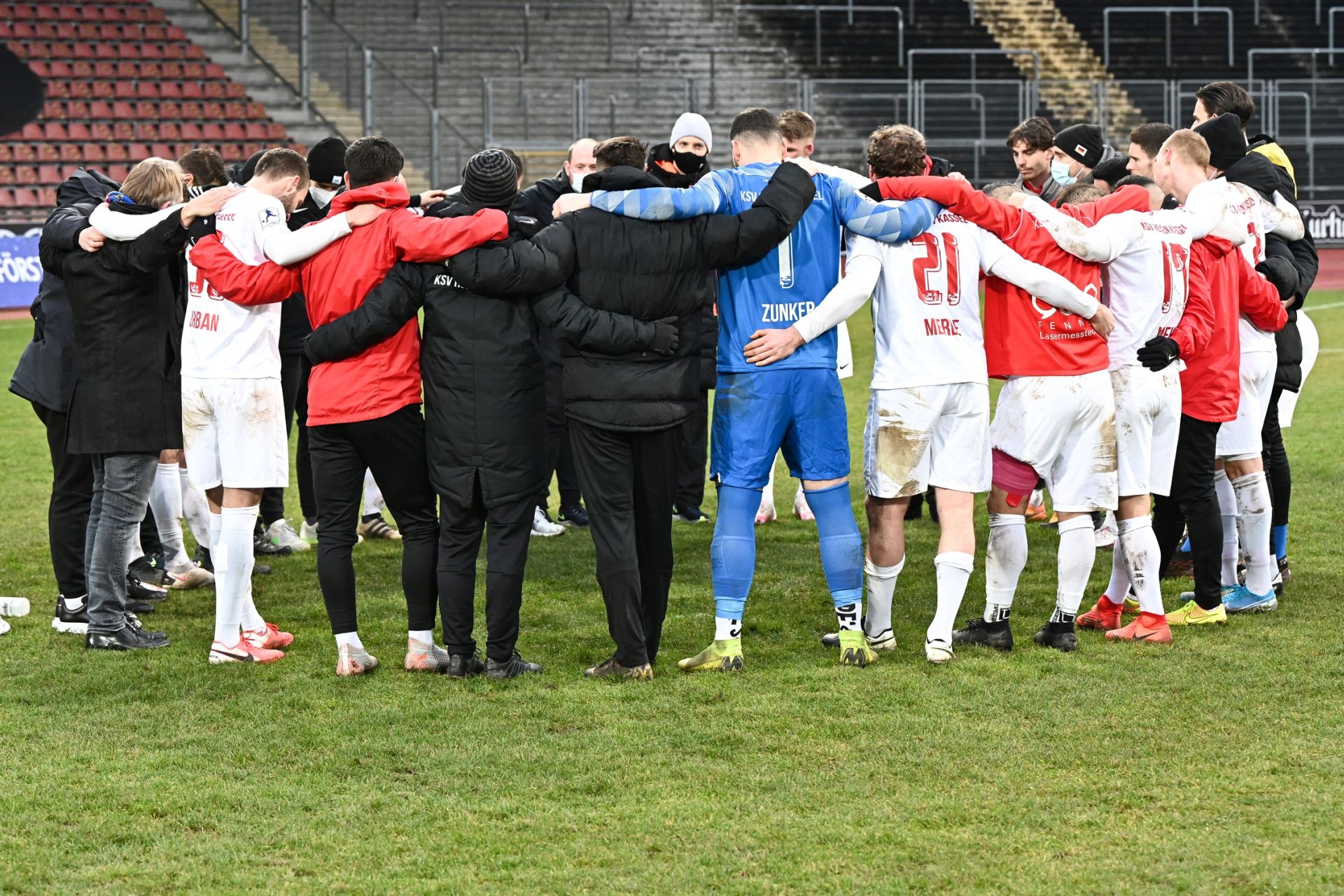 Regionalliga Südwest 2020/21, KSVHessen Kassel, TSV Steinbach Haiger, Endstand 2:1, Totti, Sergej Evljuskin, Kreis, Jubel