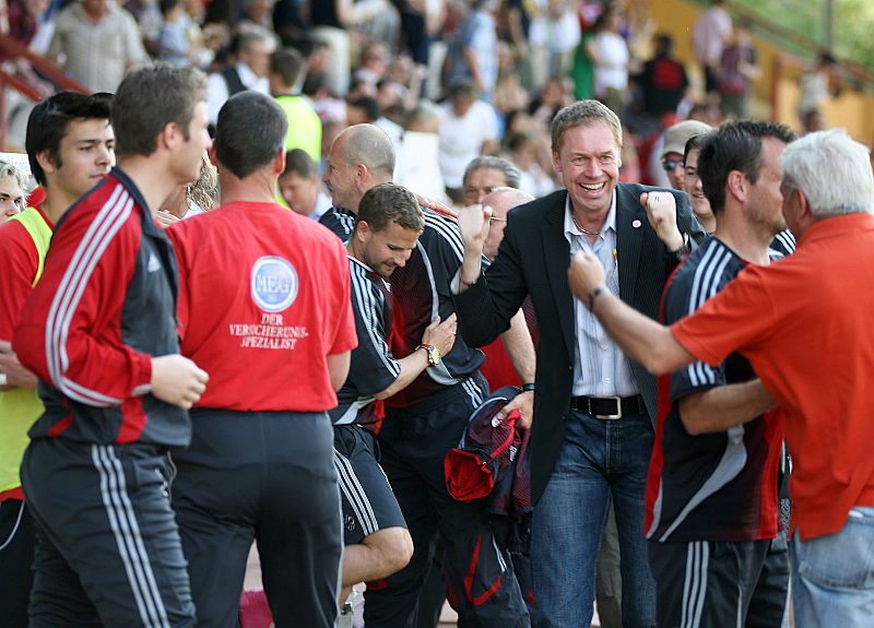 Freude bei Mannschaft, Trainer, Betreuer und Vorstand Jochen Gabriel (Mitte)