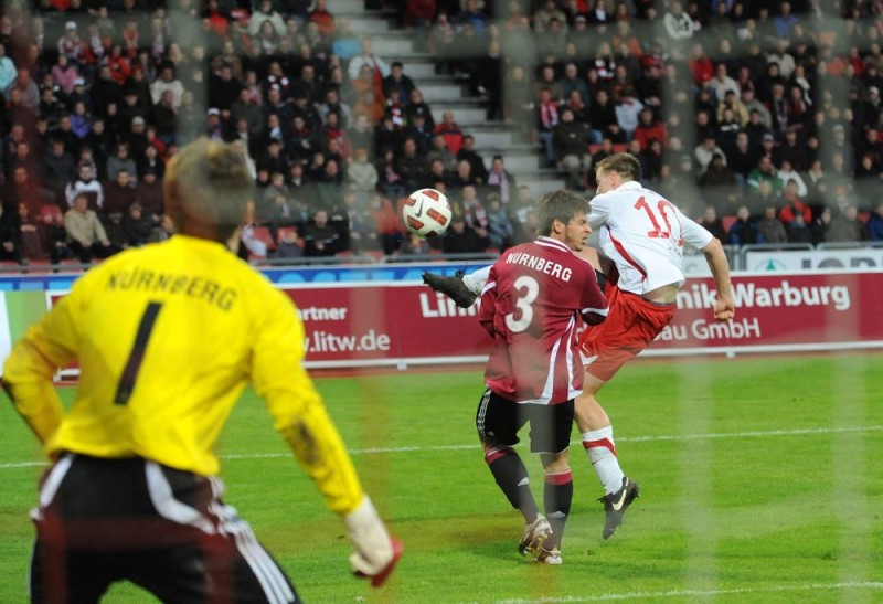 Szene aus dem Spiel des KSV Hessen gegen den 1. FC Nürnberg II aus der Saison 2010/11