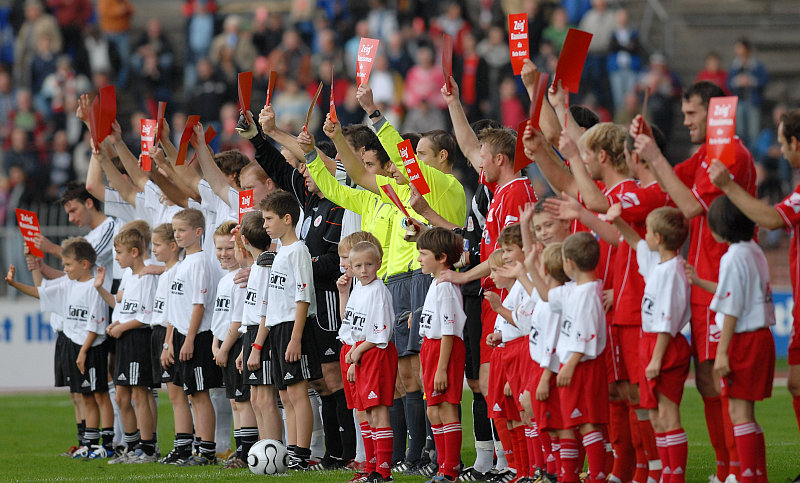 Aktion vor dem Spiel: Zeig' Rassismus die Rote Karte (Foto: Roland Sippel)