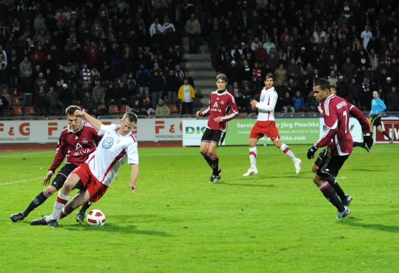 Szene aus dem Spiel des KSV Hessen gegen den 1. FC Nürnberg II aus der Saison 2010/11
