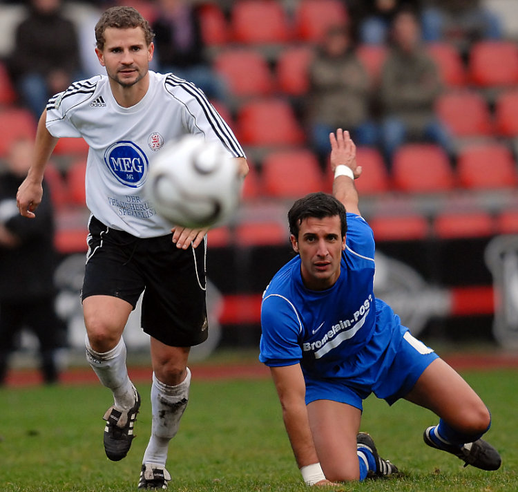 Kopfballduell von Christoph Keim und Carsten Birk(li.)