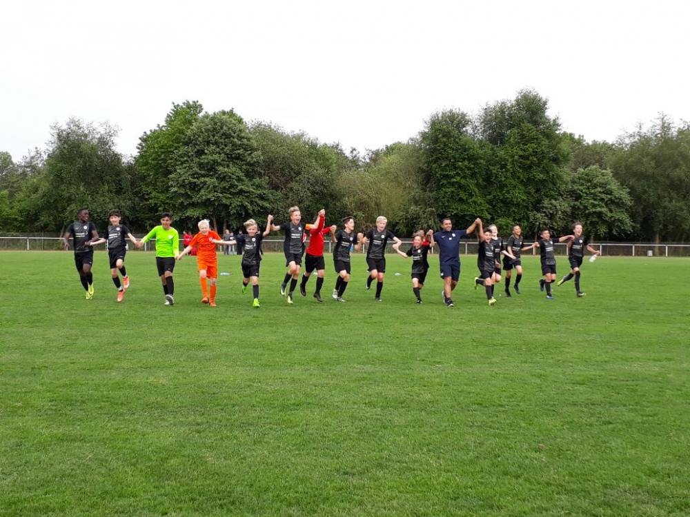 Die Freude der Jungs war nach dem Spiel riesengroß und die Mannschaft feierte ausgelassen auf dem Rasen.