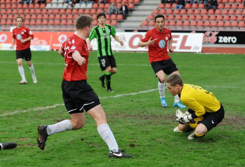 KSV Hessen - 1860 München II: Jubel bei Sebastian Gundelach, Markus Unger und Florian Heussner
