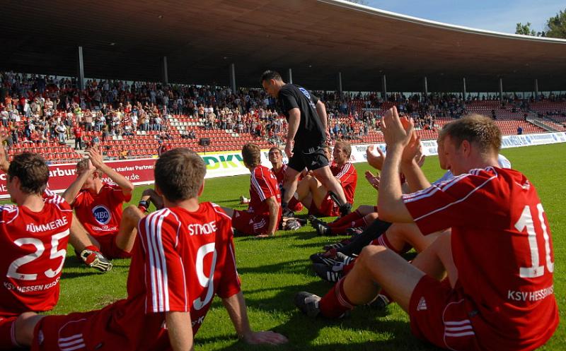 Jubel der Mannschaftl nach dem 2:0 durch Arne Schmidt (KSV Hessen Kassel) (Mitte)