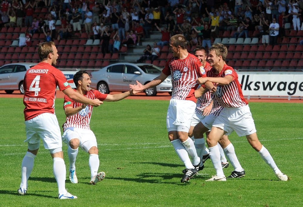 KSV Hessen - Greuther Fürth II: Jubel, Tim Knipping, Patrick Wolf, Enrico Gaede