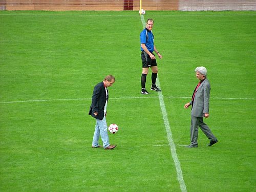 OberbĂŒrgermeister Hilgen und Jens Rose beim Anpfiff