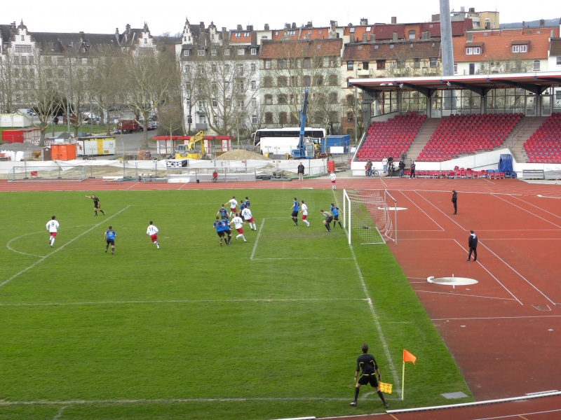 Eine Überraschung gab es bereits vor dem Spiel. Über Nacht hatte die Rasenbewässerungsanlage des G-Platzes das Standardgrün der zweiten Mannschaft eben einmal kurzerhand in die "Süd-Kasseler-Seenplatte" verwandelt. Deshalb wurde das Spiel in die Heimstätte der "großen Löwen", das Auestadion verlegt.