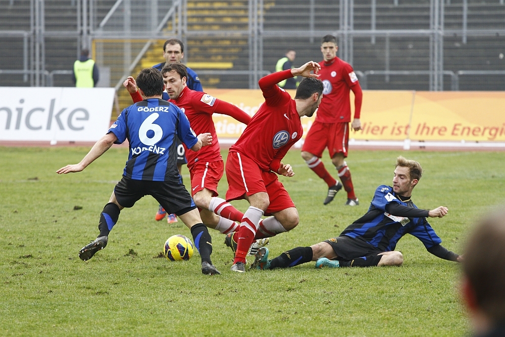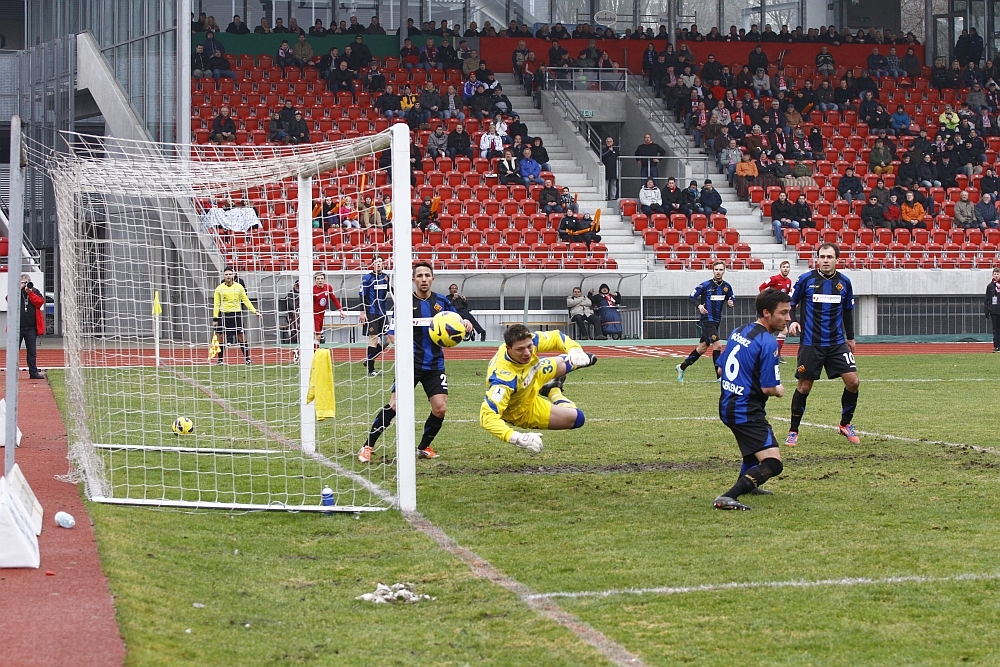 Müller und Henel kommen nicht an den Ball, den hat Paucken mal wieder abgewehrt