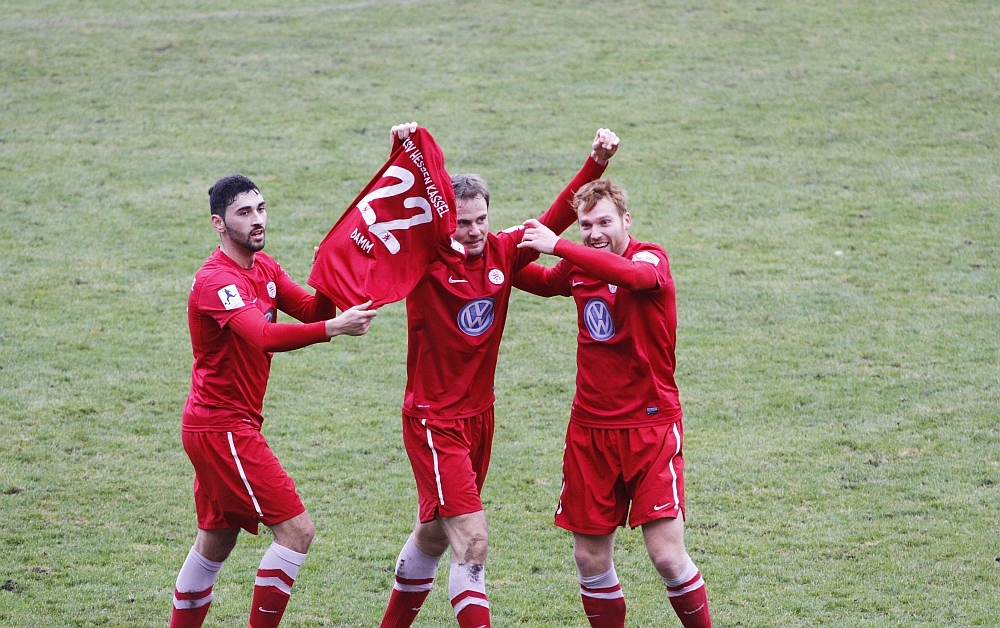 Große Geste, die Spieler widmen das Tor zum 1:1, dem kranken Tobias Damm! Gute Besserung Tobi!