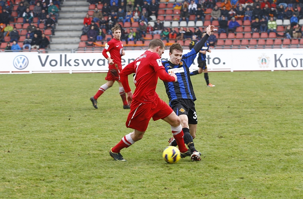 Immer wieder zu sehen, dass Knie und Ellenbogen im Zweikampf angezogen werden, hier Mayer der Leidtragende
