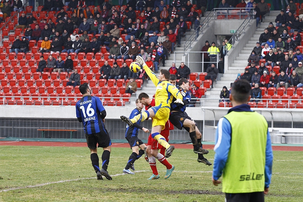 Der Koblenzer Torwart pariert Henels Kopfball