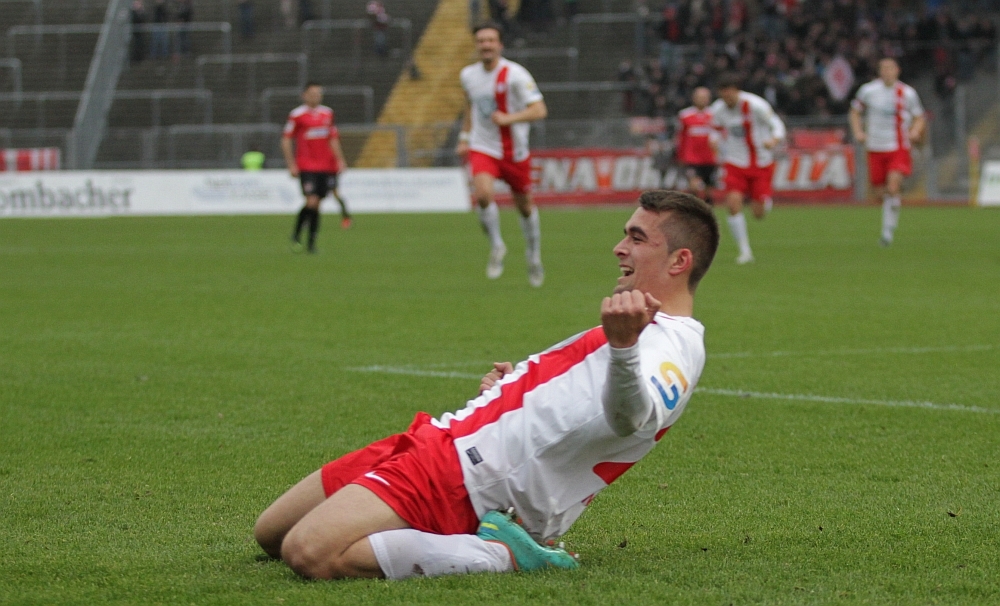 Marcel Andrijanic bejubelt sein Tor, mit Sauer und Nagel