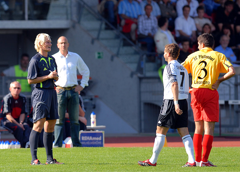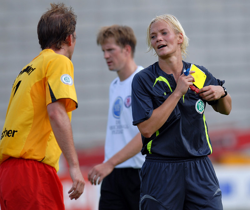 Verwarnungen gegen Pfullendorfer Spieler, SR'in Bibiana Steinhaus (Foto: Sippel)