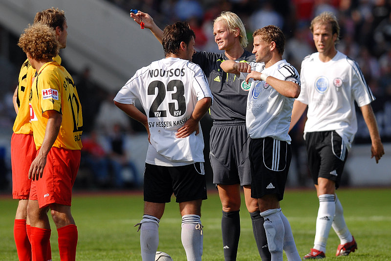 Verteilte 5x Gelb und einmal Gelb-Rot, SR'in Bibiana Steinhaus aus Hannover (Foto: Sippel)