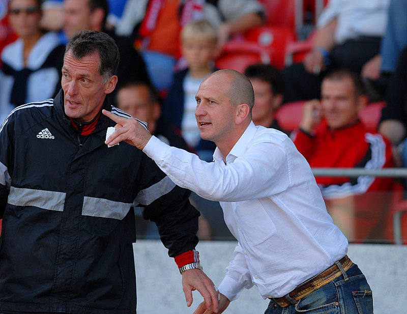 Trainer Hamann gibt von der Tribüne Anweisung an Coach Michael Gibhardt (Foto: Sippel)