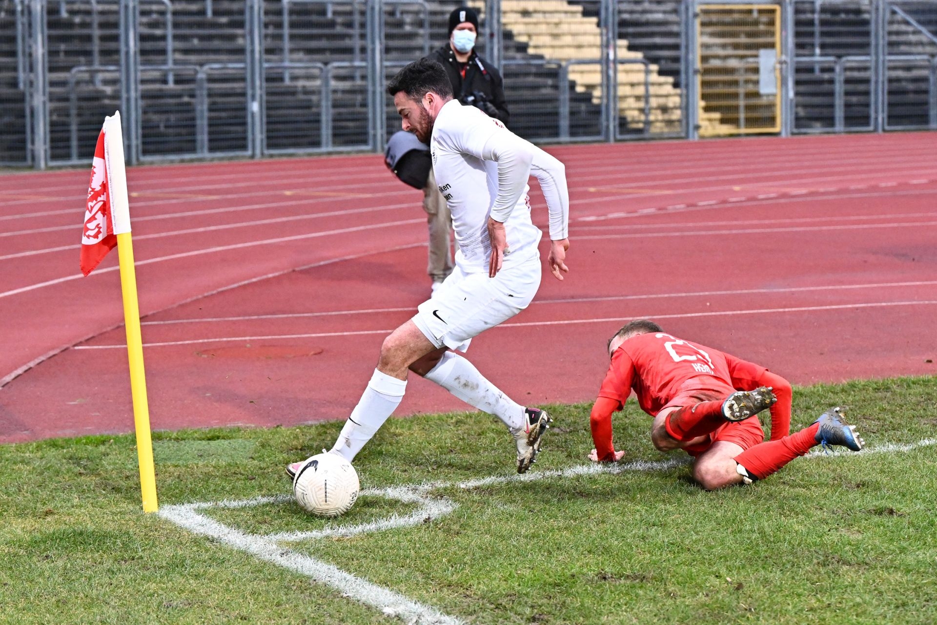 Regionalliga Südwest 2020/21, KSVHessen Kassel, TSV Steinbach Haiger, Endstand 2:1, Sebastian Schmeer, Totti, Eckfahne, Ball