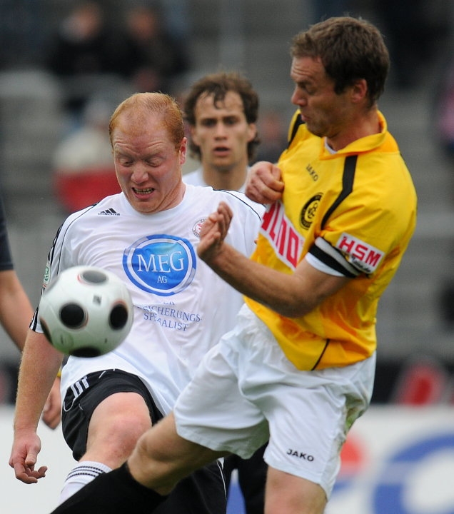 Warten auf das Spielgerät: Thorsten Bauer (KSV Hessen Kassel) und Marco Konrad (SC Pfullendorf)