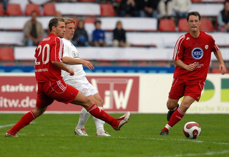 Denis Berger (KSV Hessen Kassel), Gerrit Müller (Sportfreunde Siegen) (hinten) und Michael Kümmerle (KSV Hessen Kassel) (R)