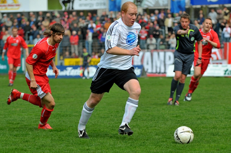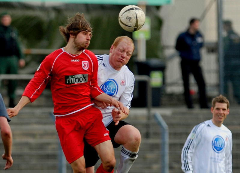 Im Luftkampf: Andreas Schäffer (SSV Jahn) (L) gegen Sebastian Busch (KSV Hessen Kassel)