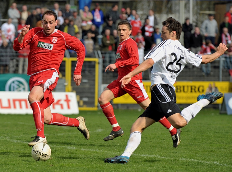 Michael Kümmerle (M) und Serdar Bayrak (KSV Hessen Kassel) im Angriff