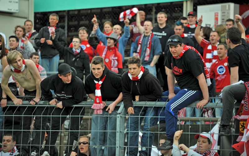 Bejubeln den 2:0 Sieg: die mit dem vom der MEG gesponserter Löwen-Fanbus mitgereisten KSV Fans