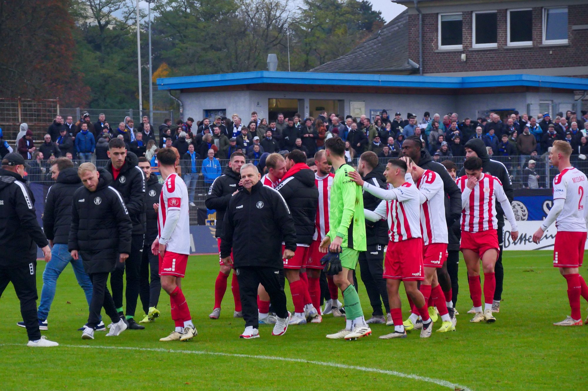 SV Eintracht Trier - KSV Hessen Kassel, Fanblock, Abklatschen