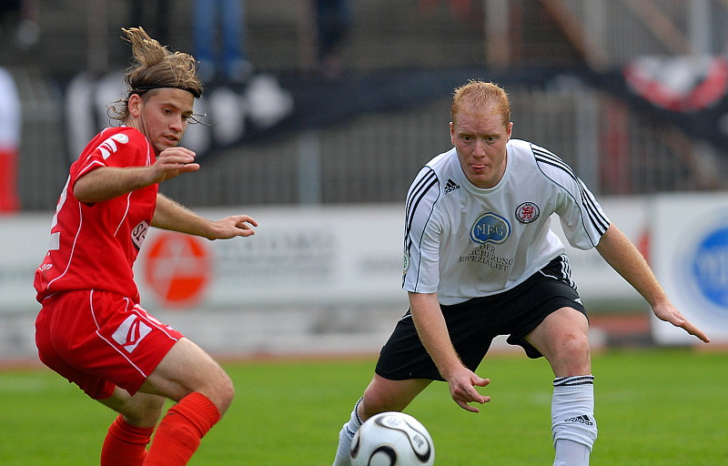 Sebastian Busch im Zweikampf gegen Nils Pfingsten (hinten) (Foto: Roland Sippel)