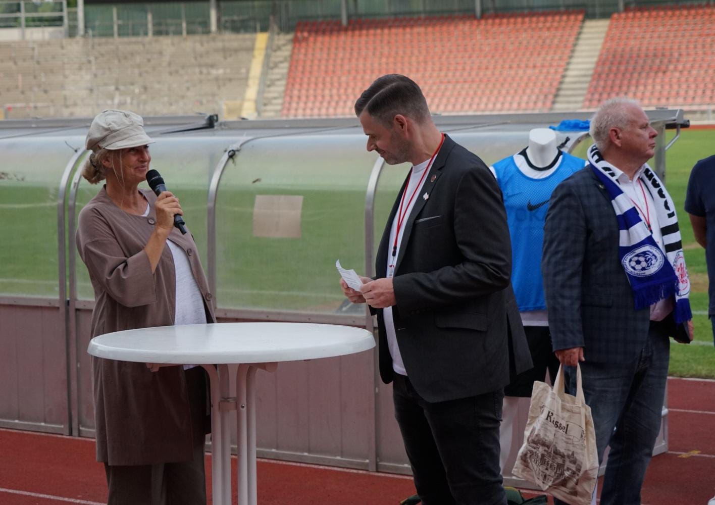Freundschaftsspiel KSV Hessen - Hapoel Nir Ramat HaSharon: Trikotpräsentation mit Claudia Becker von OKAL, dem Trikotpartner des KSV