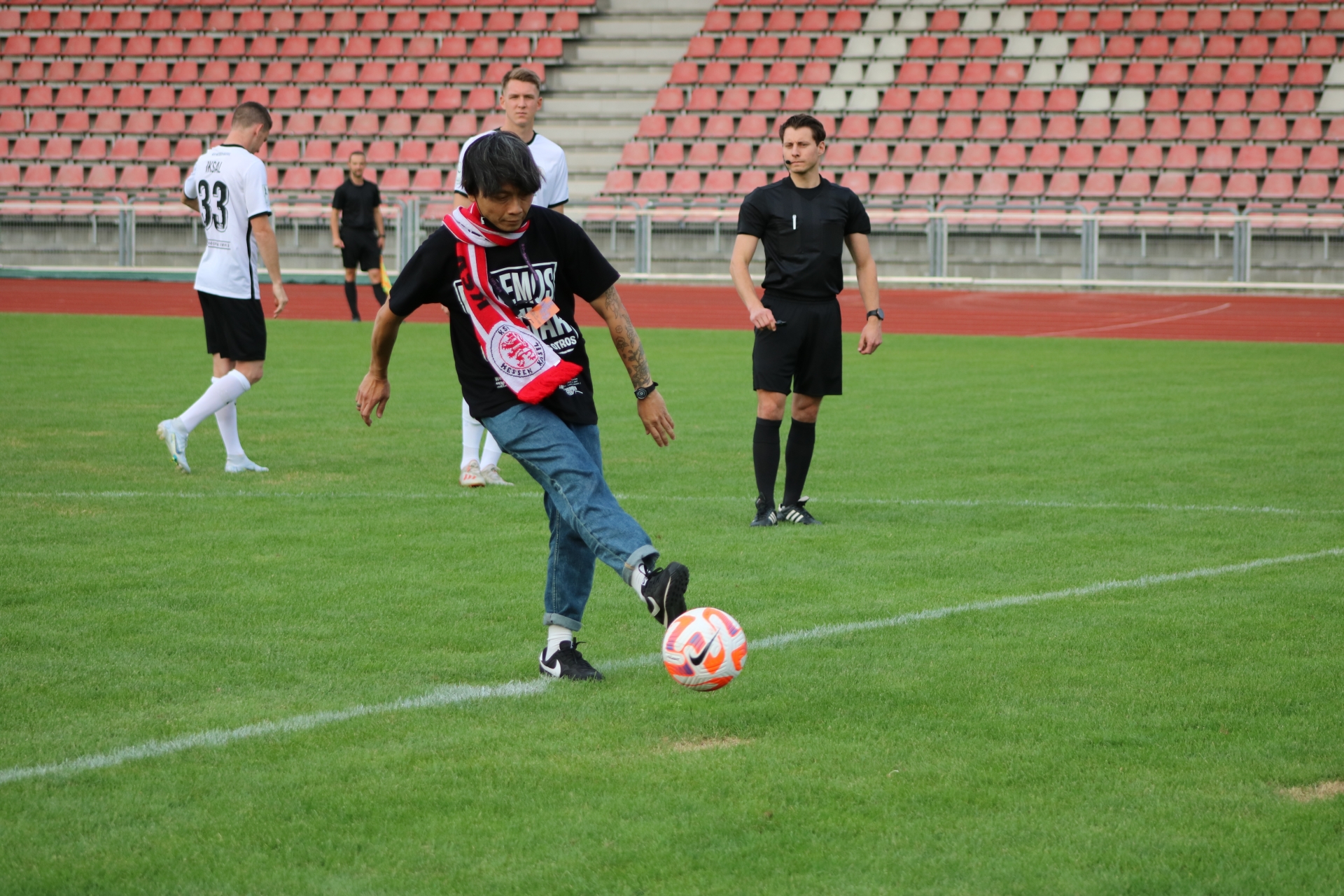 Freundschaftsspiel KSV Hessen - Hapoel Nir Ramat HaSharon: Reza Afisina von ruangrupa (documenta fifteen)