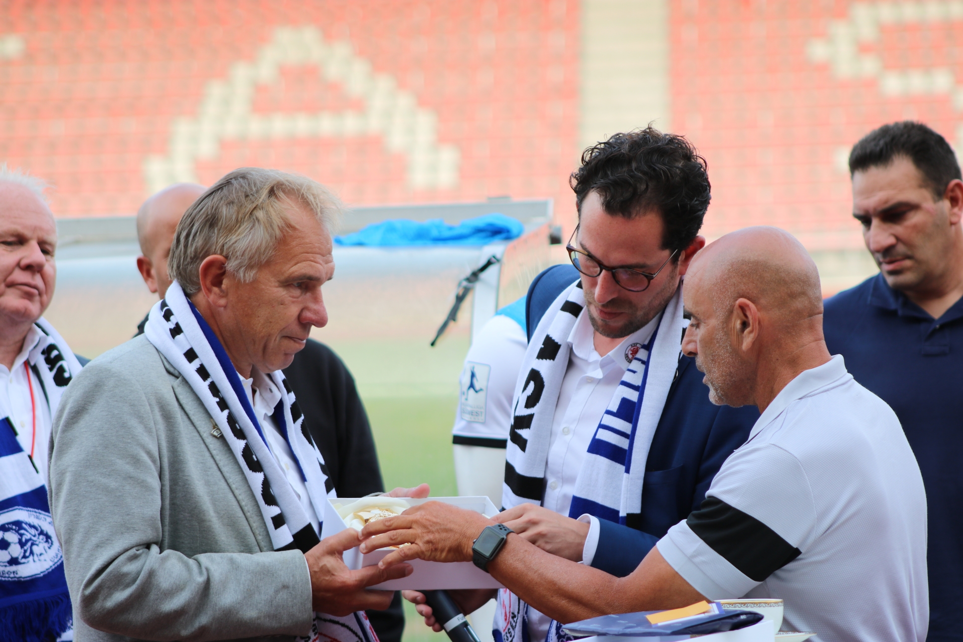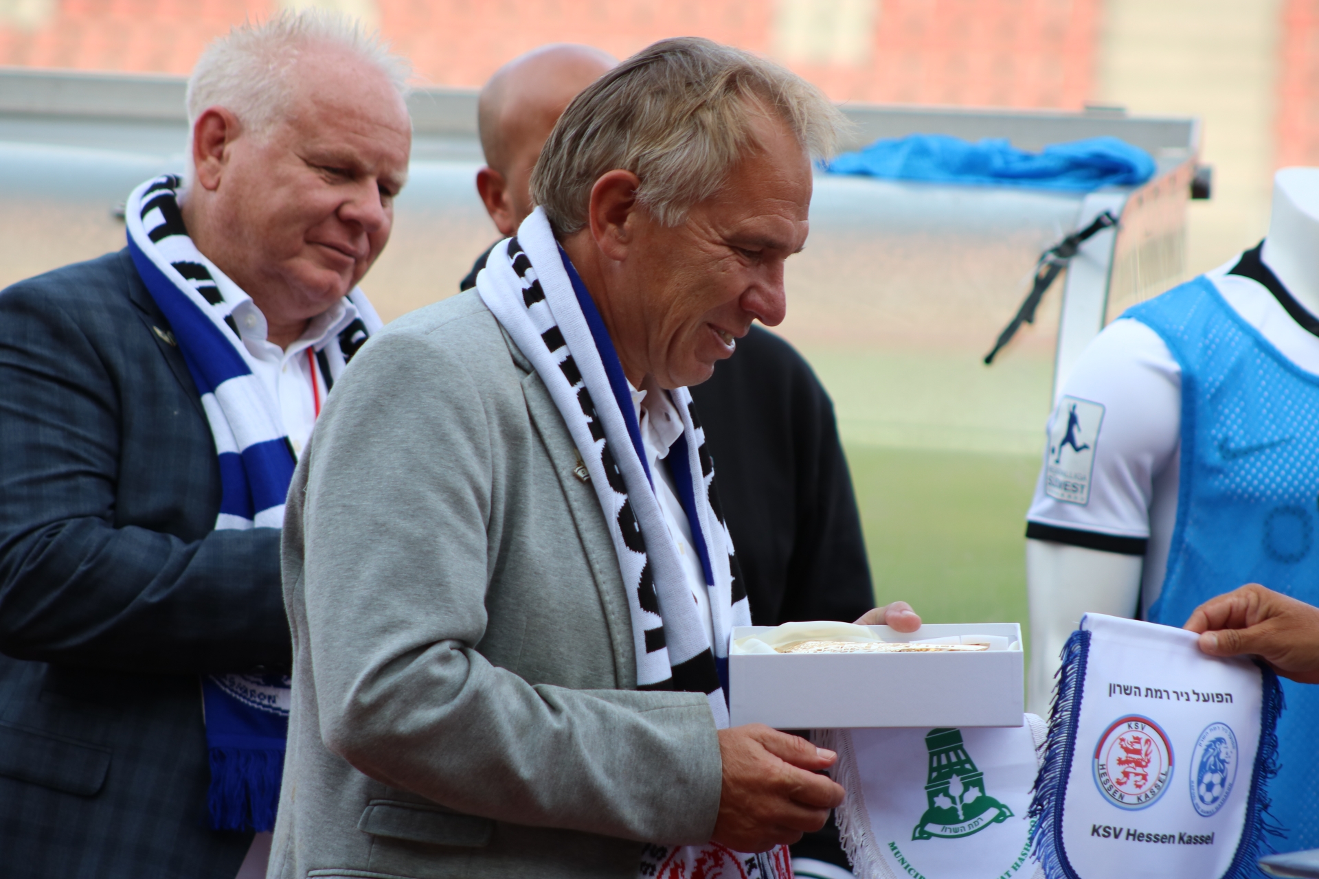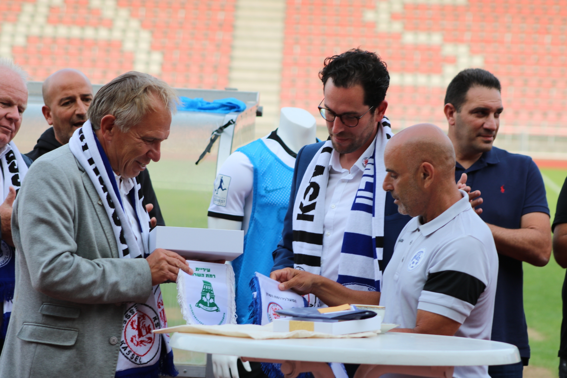 Freundschaftsspiel KSV Hessen - Hapoel Nir Ramat HaSharon: Jens Rose begrüßt HaSharons Teammanager