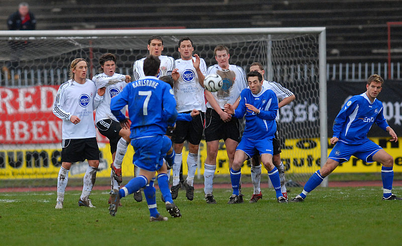 Freistoß von Karlsruhe geht über die KSV-Mauer und das Tor