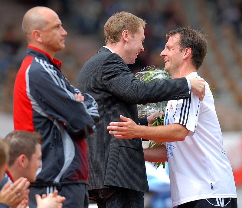 Abschied Teil 2: Jochen Gabriel (li.) verabschiedet Marc Arnold als Spieler