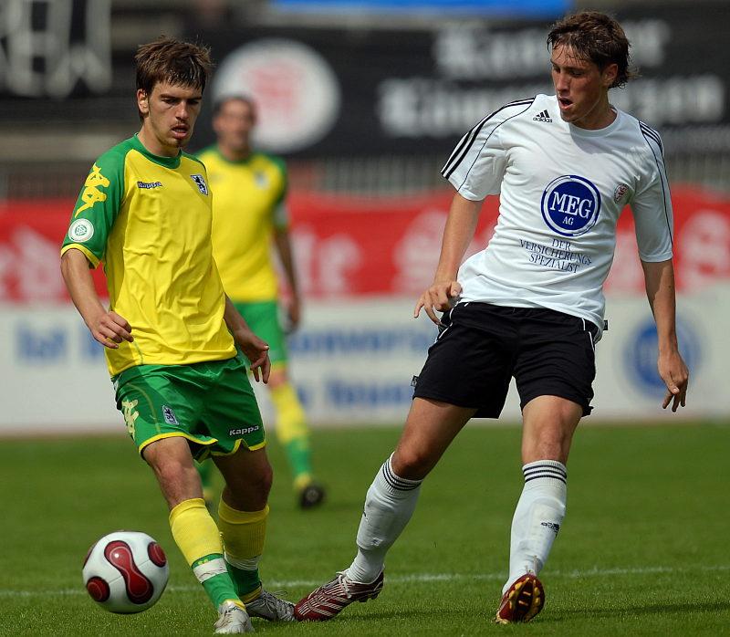 Daniel Beyer im Zweikampf gegen Sven Bender (r..)