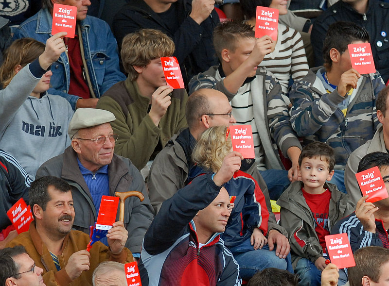 Aktion vor dem Spiel: Zeig' Rassismus die Rote Karte (Foto: Roland Sippel)