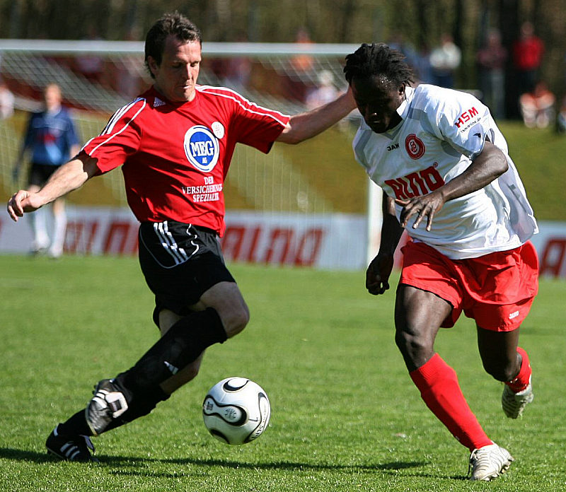 Kampf um den Ball von Mirko Dickhaut und Eric Agyemang (rechts)